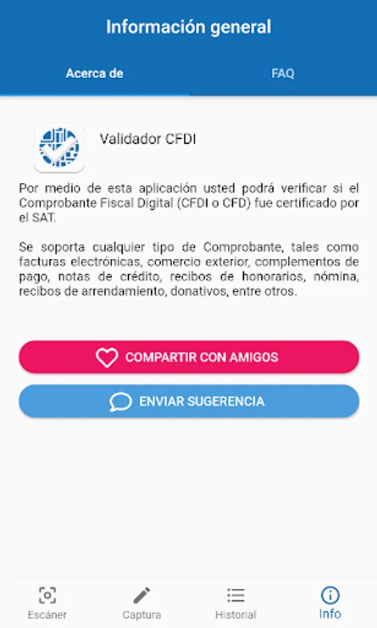 Through this application you can validate any Digital Tax Receipt (CFDI or CFD), such as electronic invoices, foreign trade, payment complements, credit notes, fee receipts, payroll, lease receipts, donations, among others.