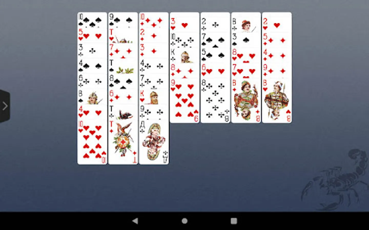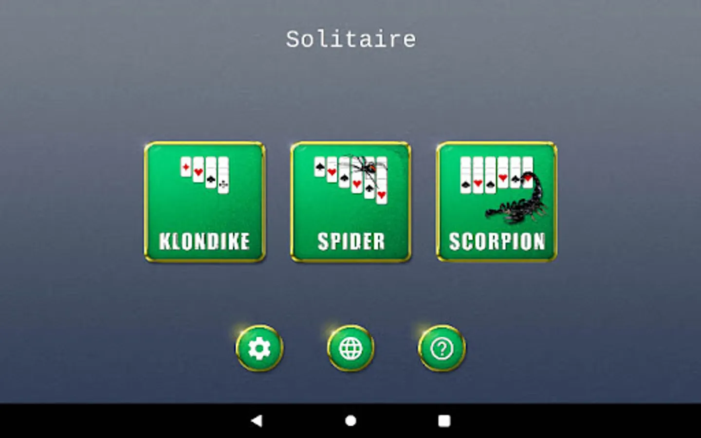 The app of popular solitaire games: Klondike, Spider and Scorpion