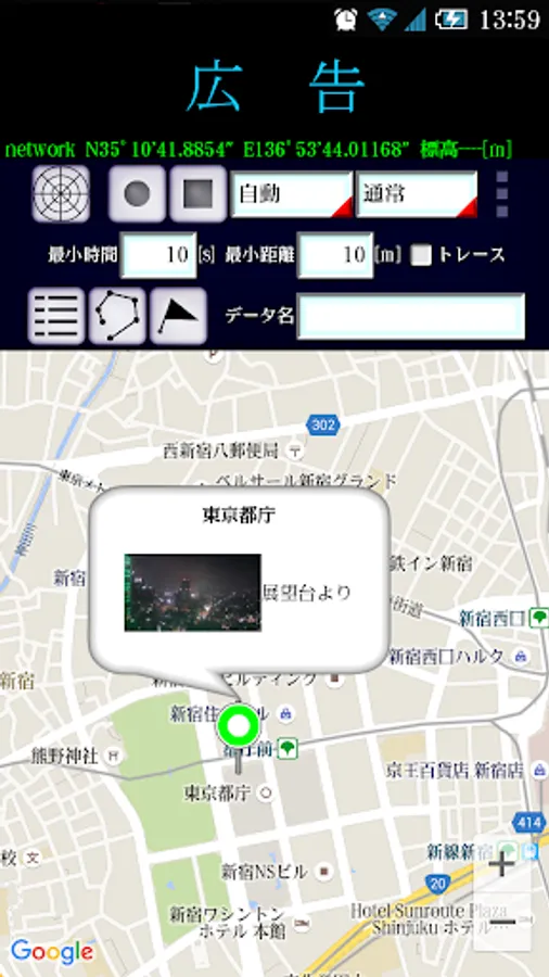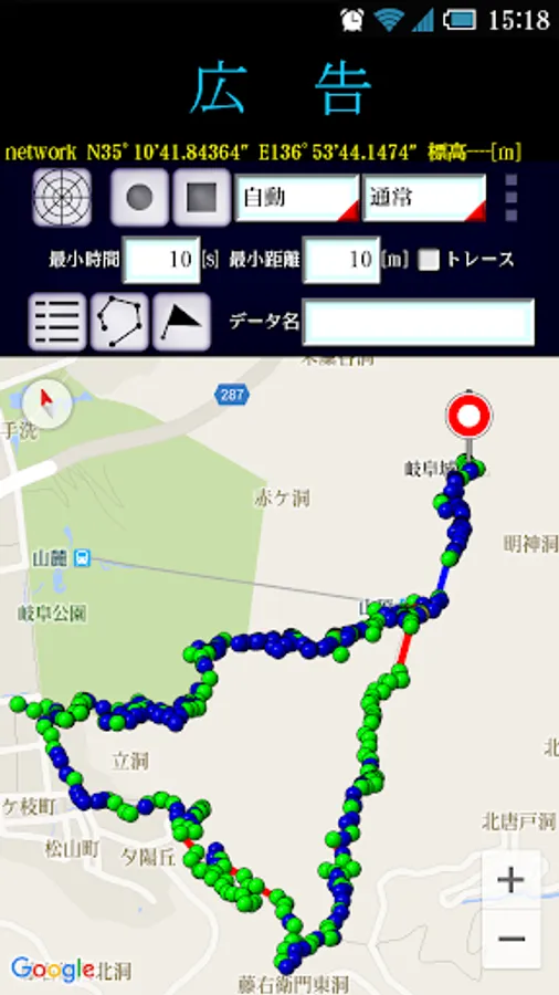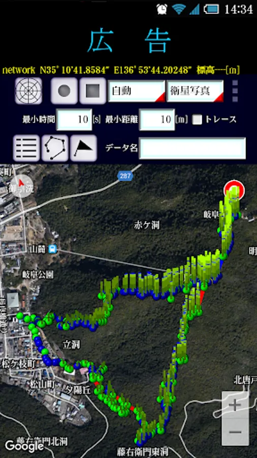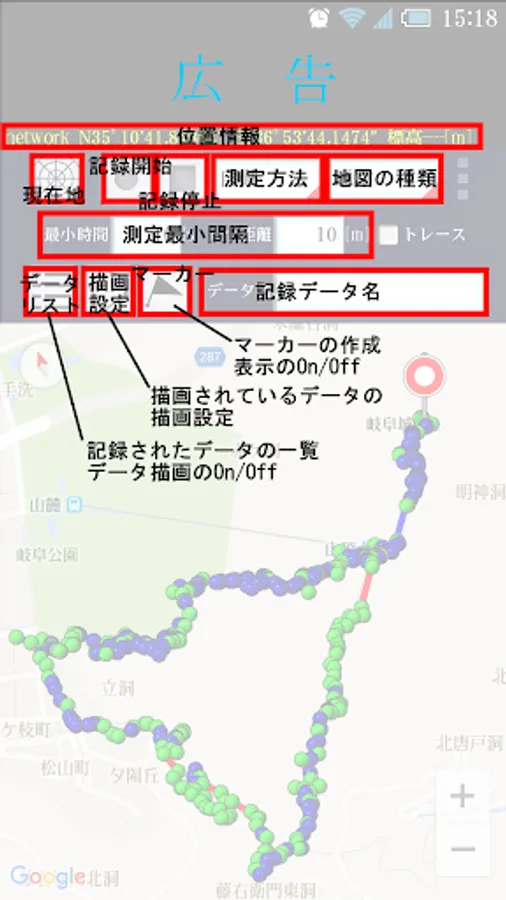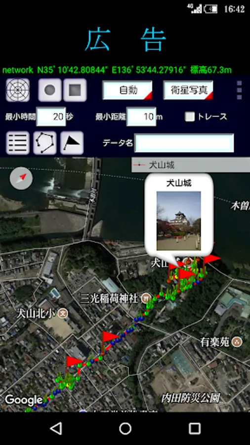 The positional information is recorded, it is an application that can be displayed on Google Map.
