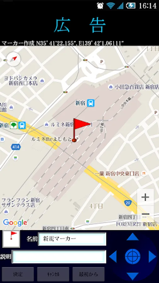 • When you launched the app, you can move the display of the map on the current location of the device when you press the upper left corner of the button of the app.