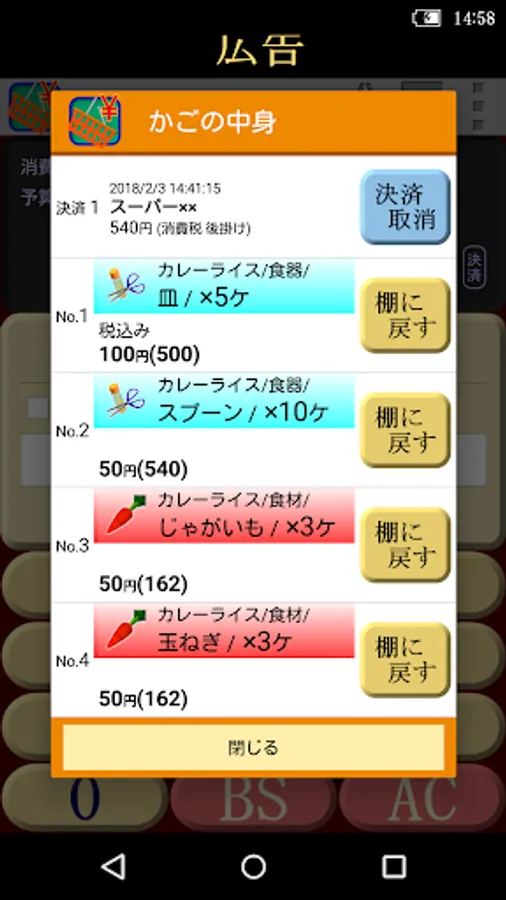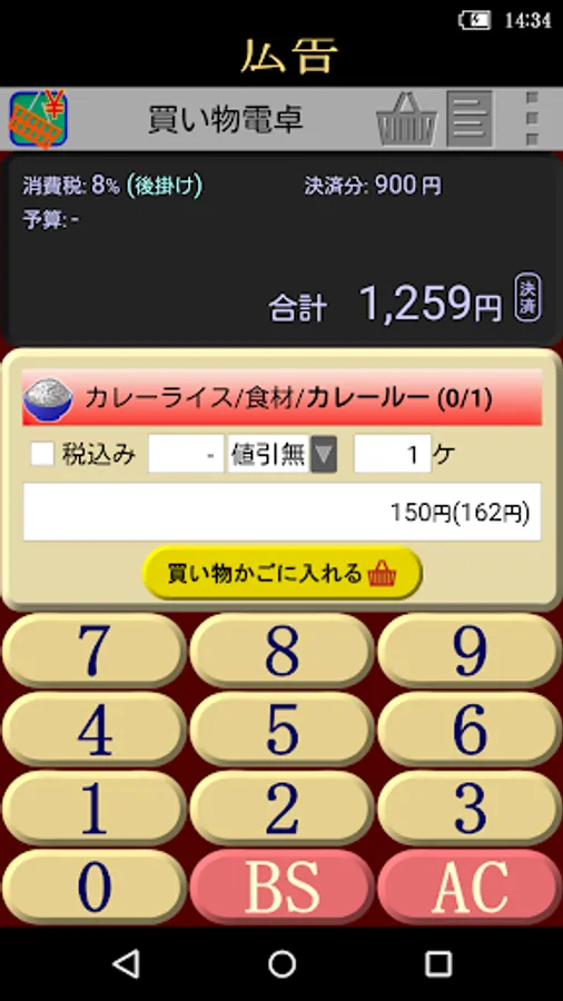 - For each product, unit price, including tax / tax-discount type items (discount ·% off · yen discount-half), discount amount and purchase the number and purchase list (if the purchase list has been set) and can be set you. By pressing the "Add to cart" button, to calculate the total.