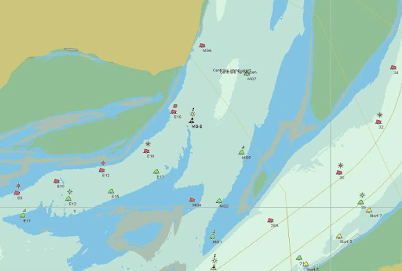 The charts contain all information for the sailor to navigate safely. They contain the actual buoyage and the most recent soundigs.