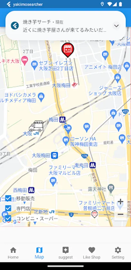 There is a function to search for baked sweet potato shops on the map.