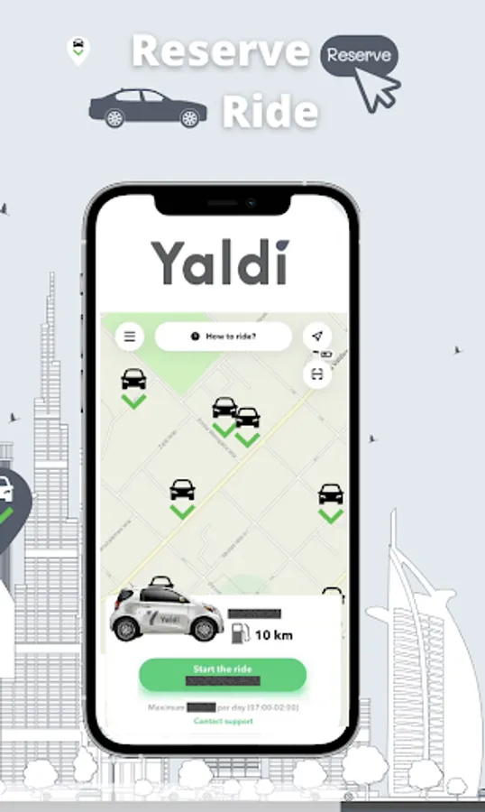 Simply download the Yaldi app, find and locate a car nearest to you, reserve, unlock and begin your journey with Yaldi.