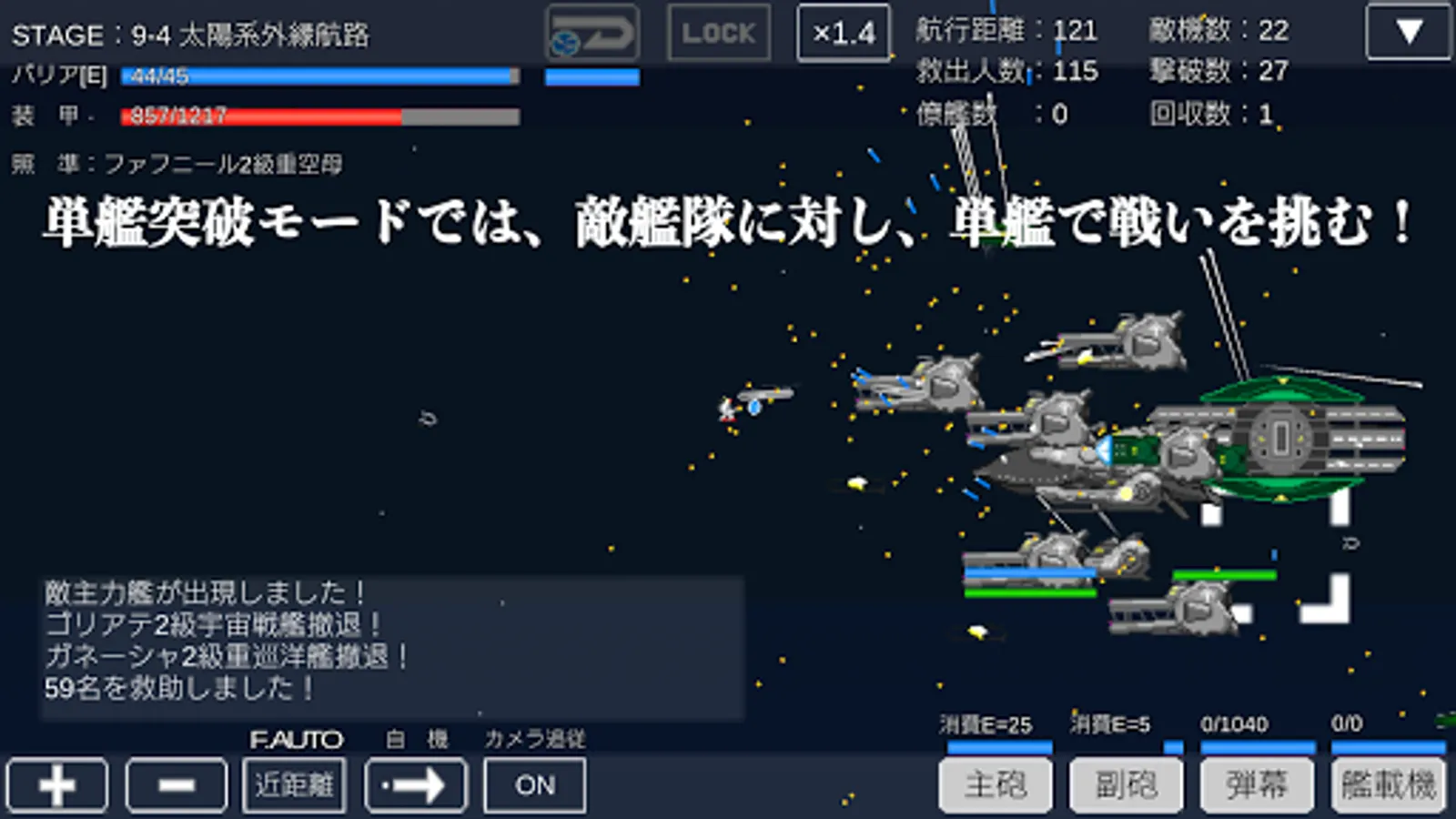 ・広大な宇宙の戦場で様々な艦種を操作してステージの最後を目指してください