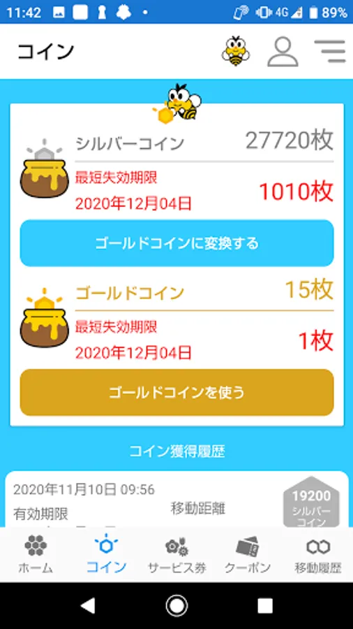 ・ Coins will be accumulated according to the number of steps (1 silver coin for 100 steps)