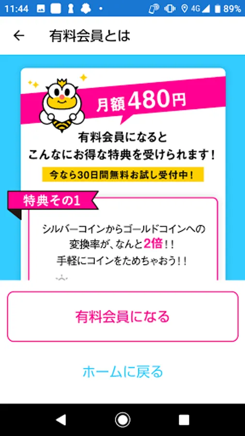 Go to the explanation page from the "Monthly membership registration" button on the upper right menu or the "Paid membership registration" button on the member information page, and tap the "Become a paid member" button to proceed to the confirmation screen.