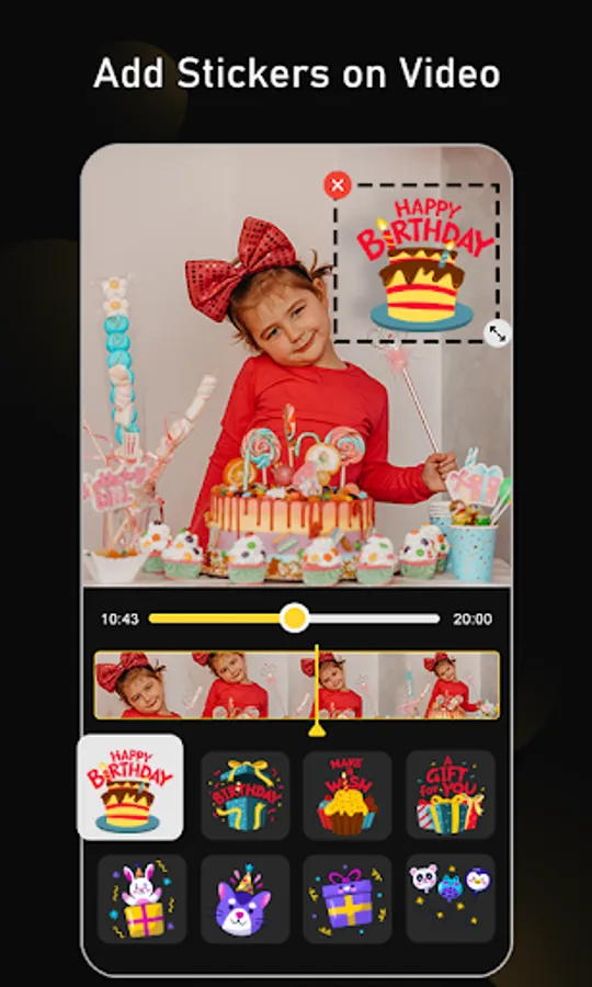 Create fancy videos with Text, various stickers & emojis in text on video editor.