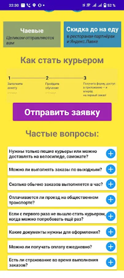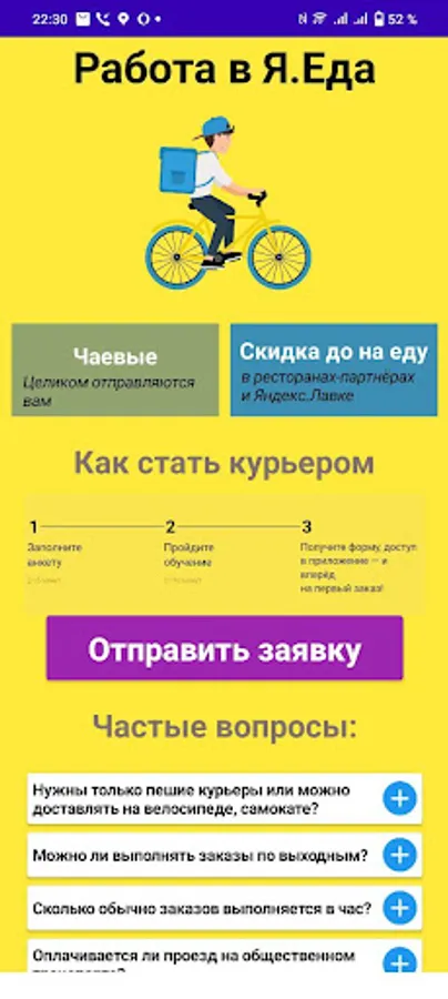 Welcome to the world of opportunities with the application "Yandex Food: Work as a Courier"! Do you want to get a job as a courier in the field of food delivery and become part of the dynamic Yandex team? Our application provides you with a unique opportunity to apply for a job and turn your ambitions into reality.