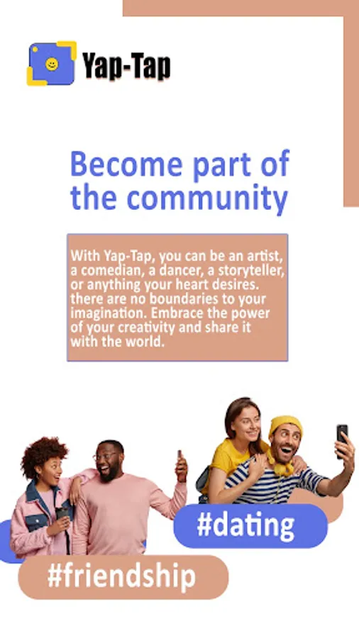 YapTap is a vibrant social media platform designed to connect people from around the world. Stay in touch with friends, share moments, and discover exciting content in a friendly and secure environment. With YapTap, you can create a personalized profile, post updates, photos, and videos, and engage with your friends through comments and likes. Discover trending topics, explore communities of shared interests, and join conversations that matter to you. Whether you're looking to connect with old friends or make new ones, YapTap is the perfect place to express yourself and stay connected with the people who matter most to you. Join the YapTap community today and start sharing your world!