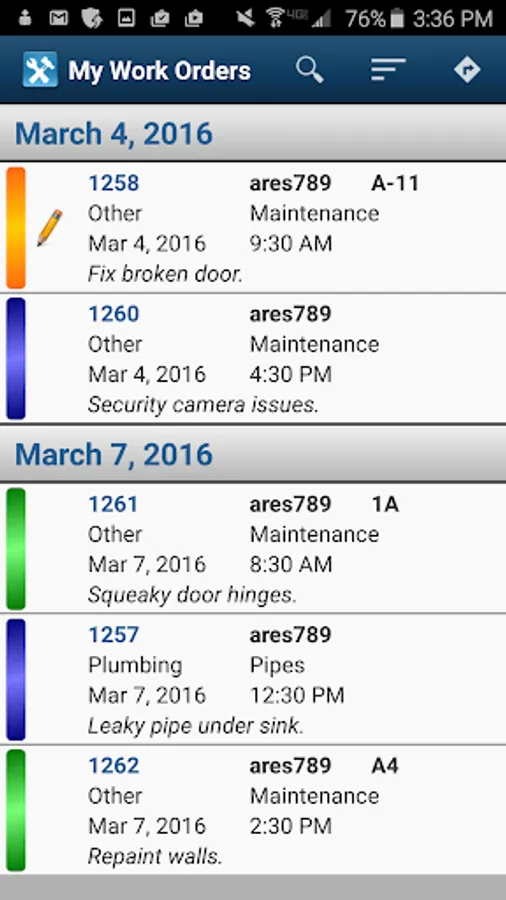 ● Assigned work orders appear on the maintenance technician’s device instantly