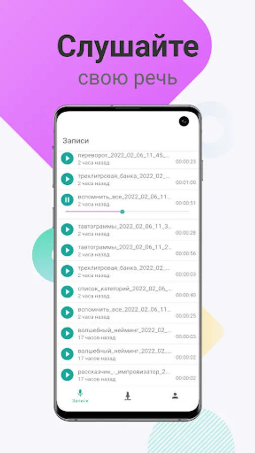 • Dictaphone and the ability to listen to your recordings to track progress.