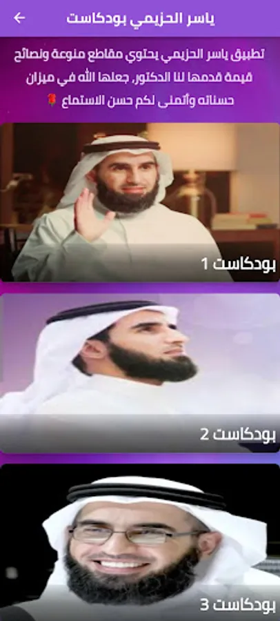 Yasser Al-Hazimi Podcast is an application dedicated to listening to various audio clips and podcasts of Sheikh Dr. Yasser Al-Hazimi