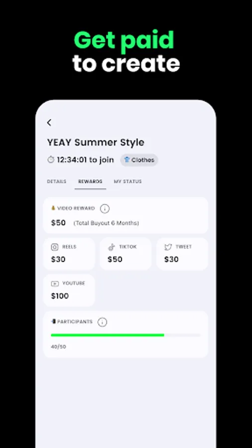 On YEAY, we'll show you available collaborations, their requirements and rewards. You decide if you want to join - it's that simple! Creating an account and connecting your socials is a breeze, and once you've found a collaboration you're interested in, all you have to do is create your video and submit it along with your social media post link to earn rewards.