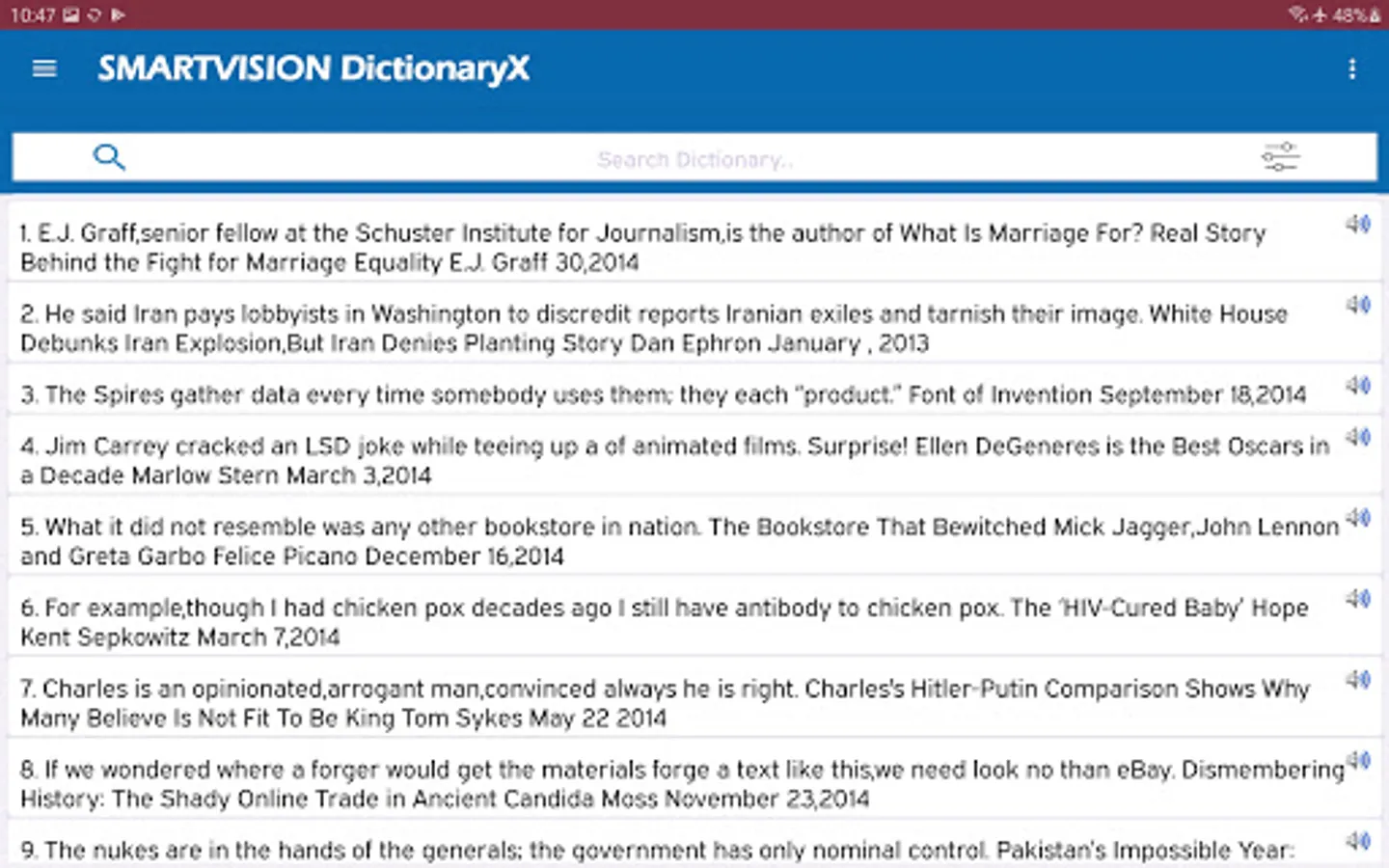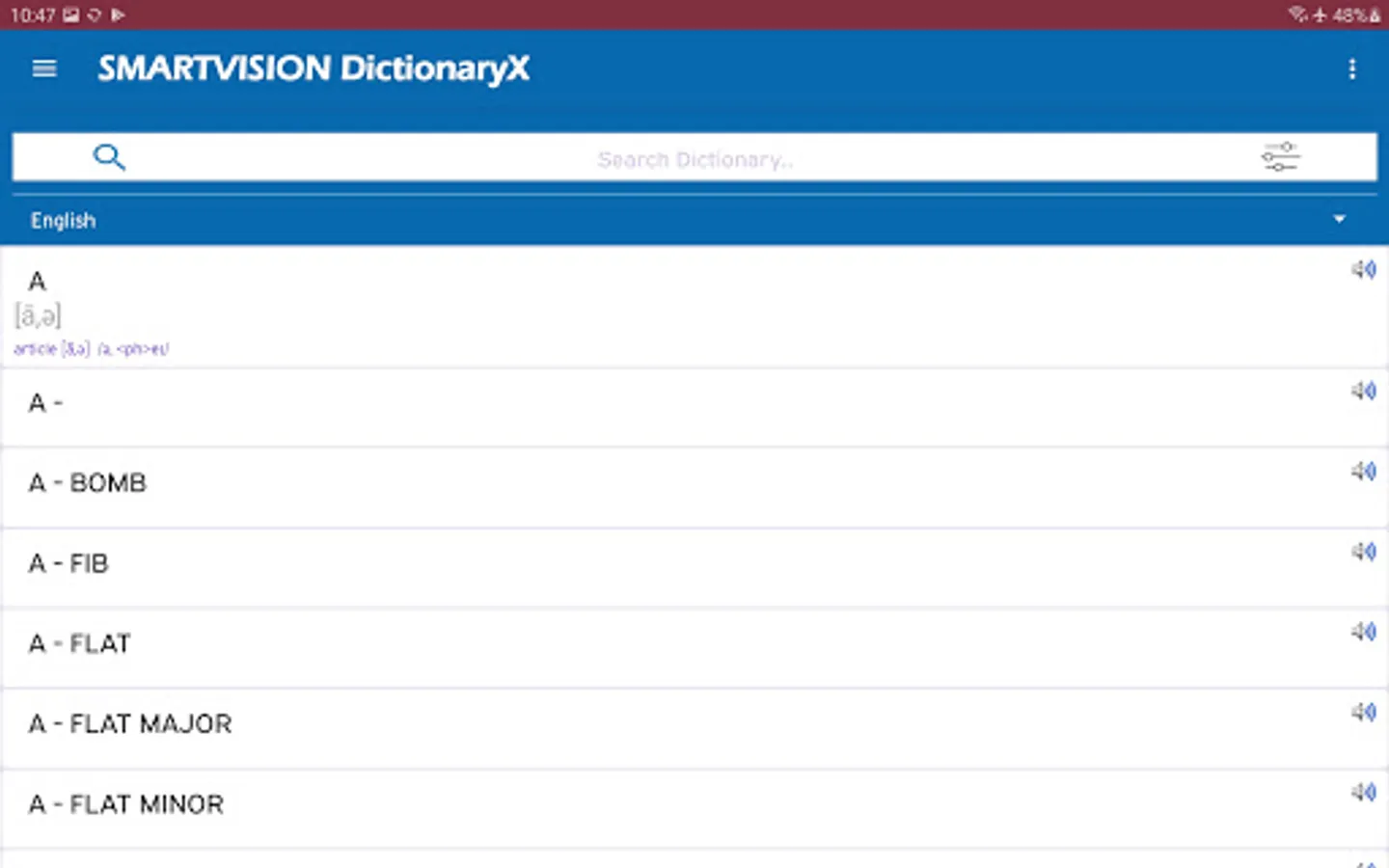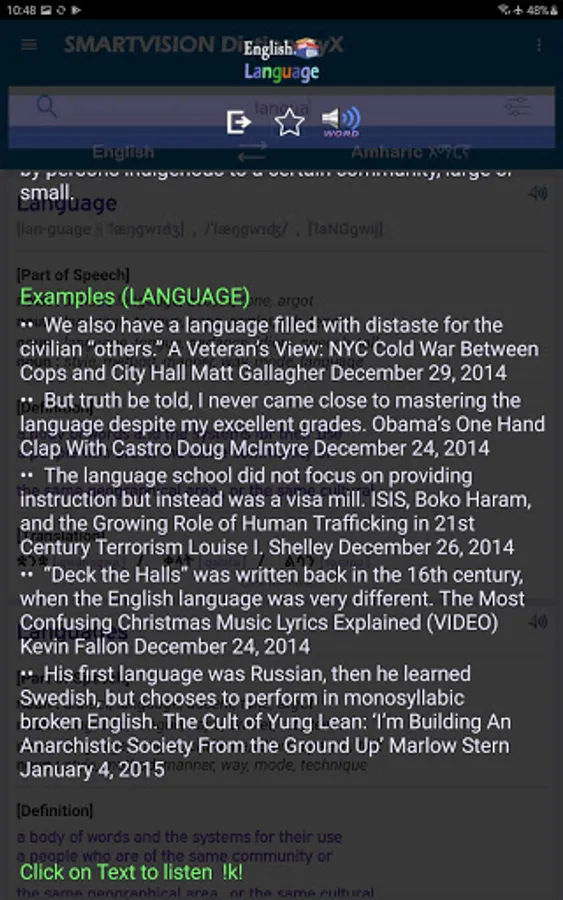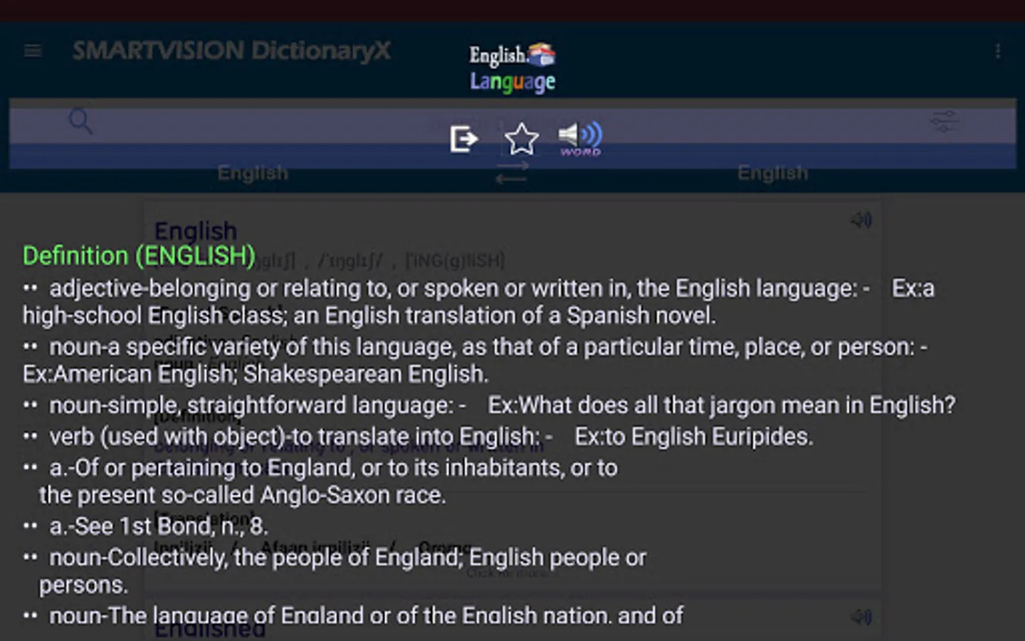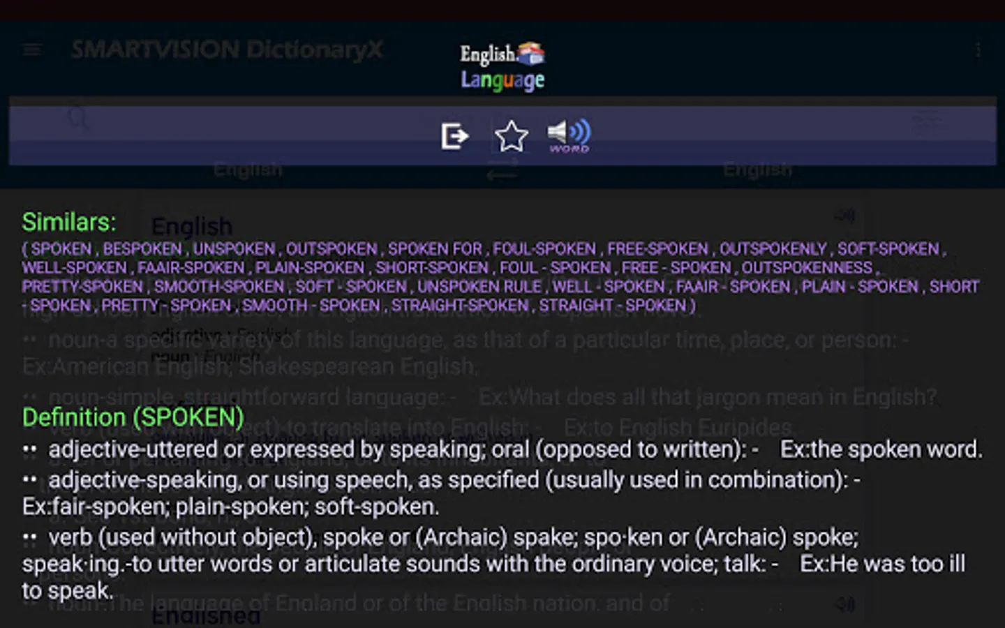 DictionaryX is now support translation to 5 different languages.(english , arabic , Amharic , Oromo , Tigrinyan ) Just click on any word in the app and you will get the all the linguistic info.