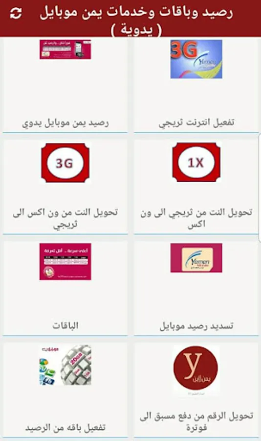 - SIM services (new and lost) for all Yemeni telecommunication networks.