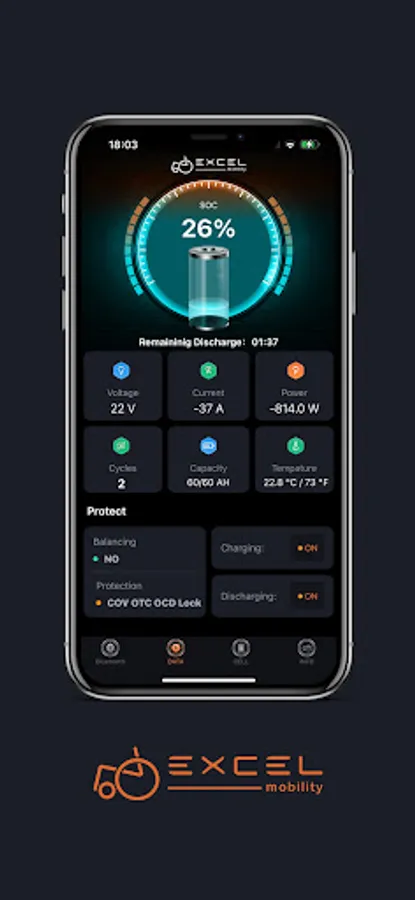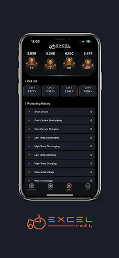 Excel Mobility provides mobile and nursing aids for the elderly and the disabled to provide intelligent battery management systems for wheelchairs, scooters, walkers, electric wheelchairs and boosters, which can be connected via Bluetooth to monitor battery status and collect data in real time Store and process information during battery operation, and exchange information with external devices, so that the following content can be seen intuitively during use: