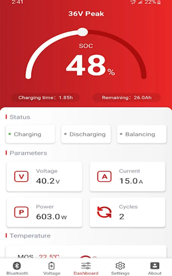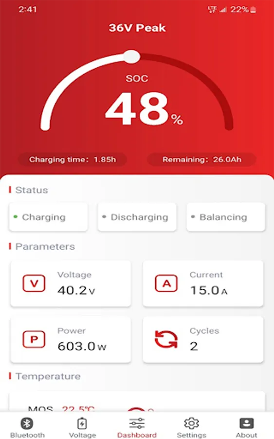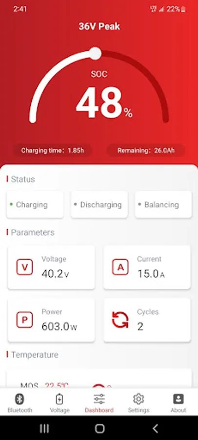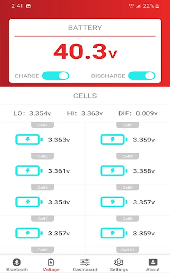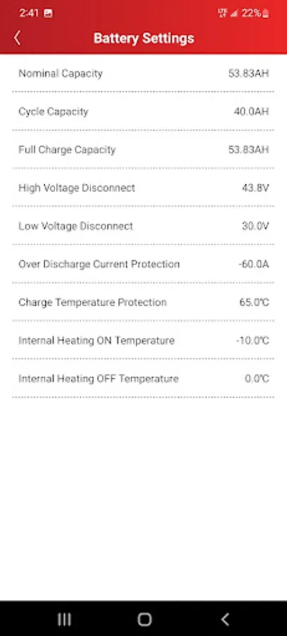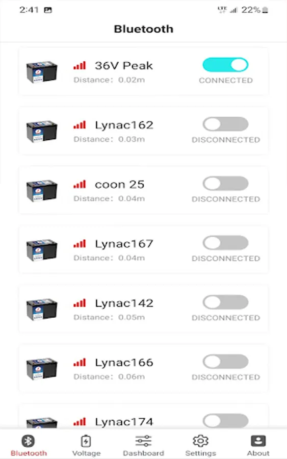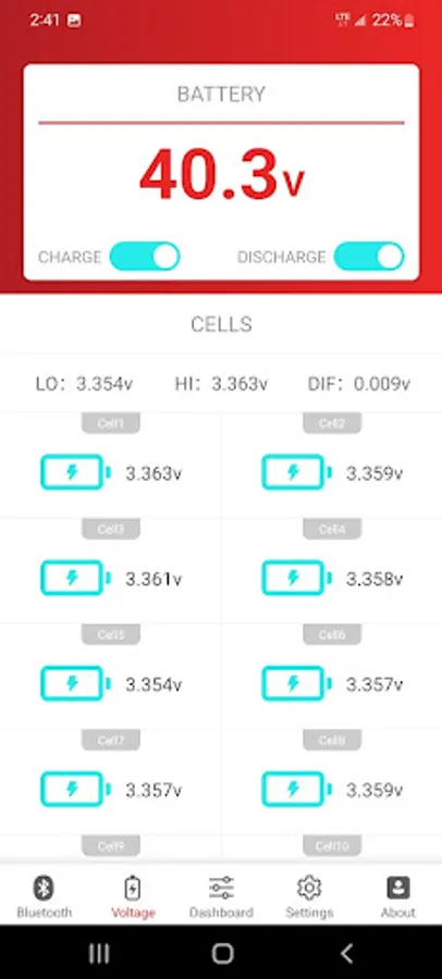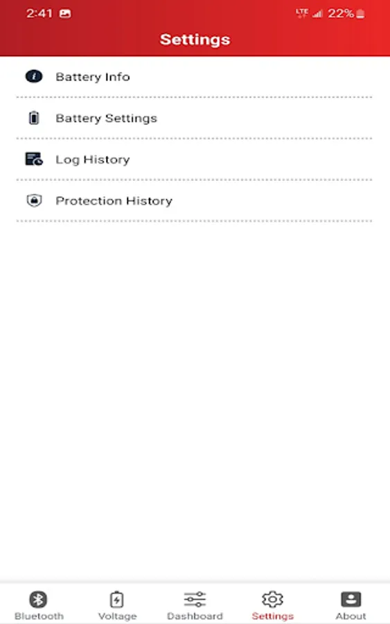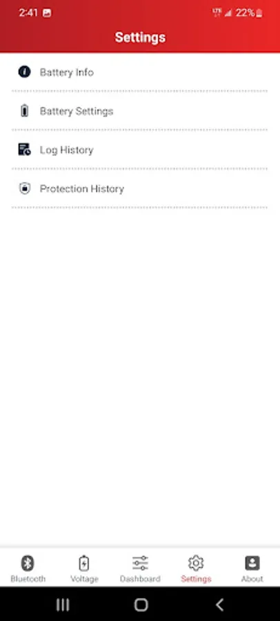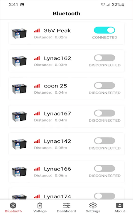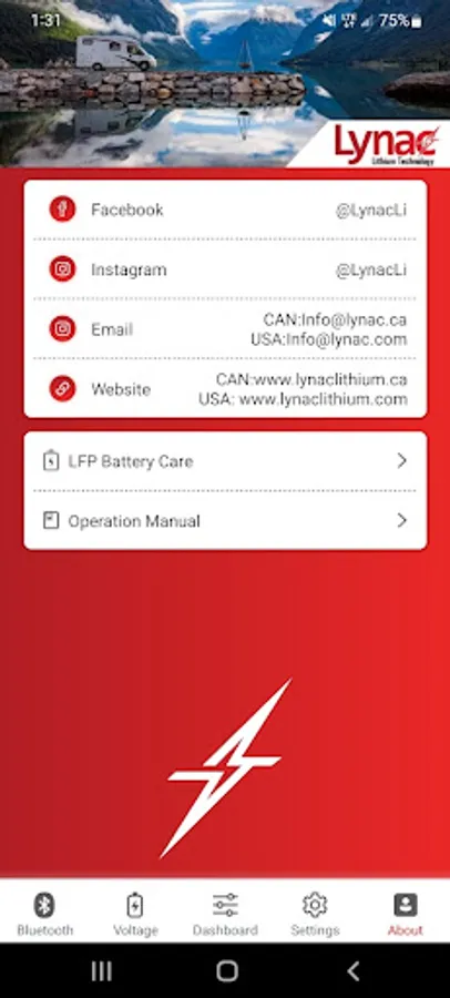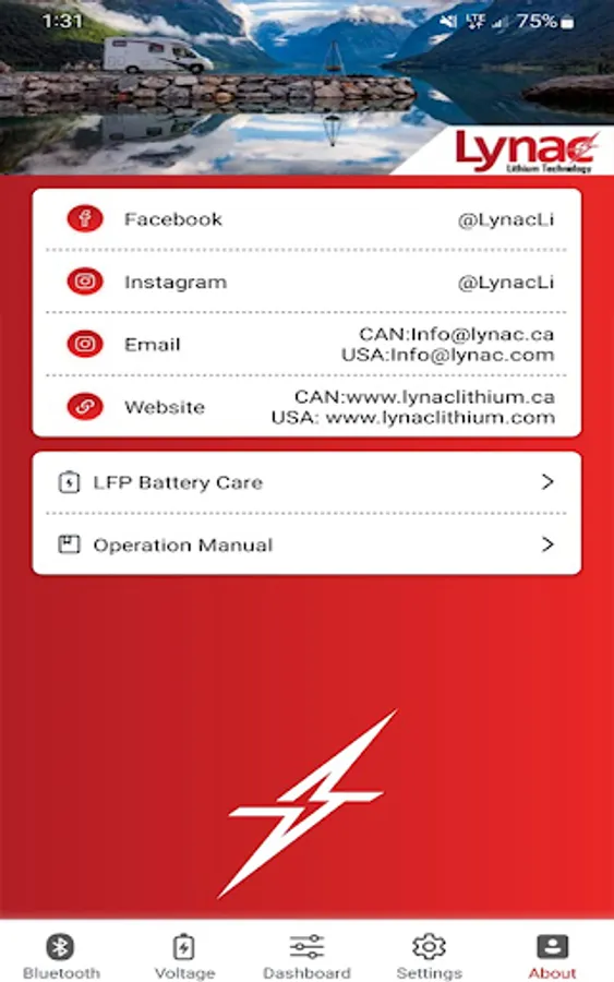 Bluetooth App that connects to Lynac Lithium products and allows the user to monitor activity, adjust parameters, and turn on/off the charge/discharge of our LFP battery products.