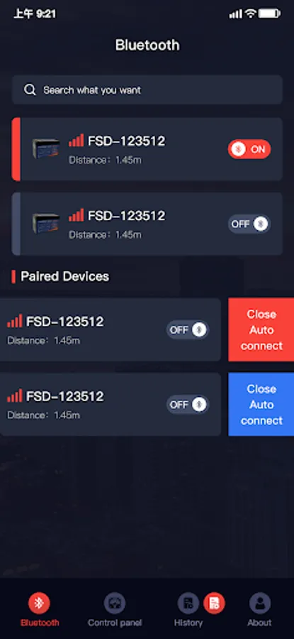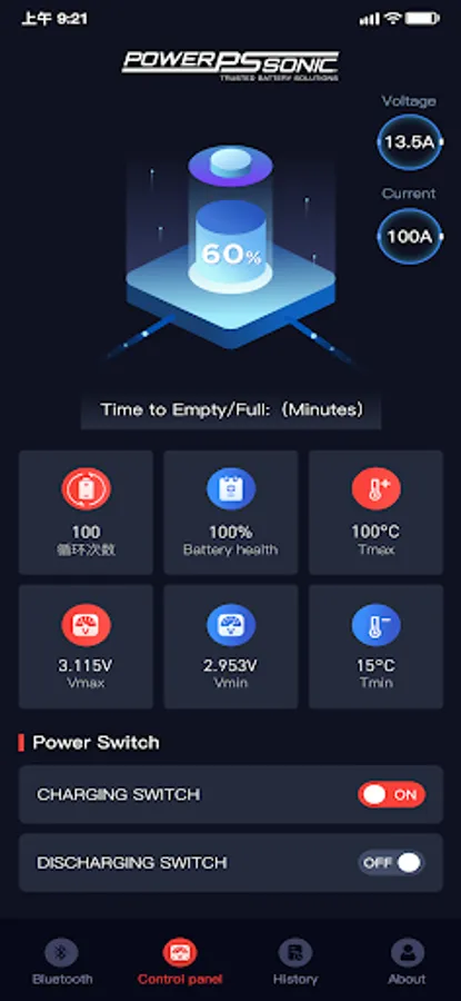 2. Turn the connected battery on and off with the touch of a button