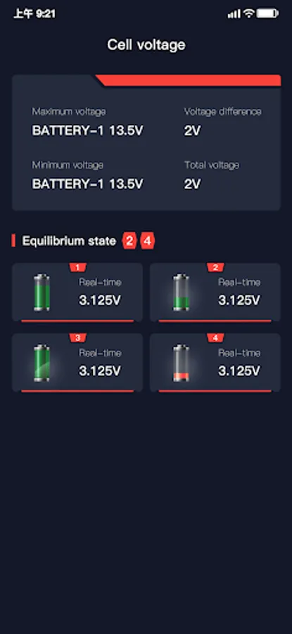 3. Display the real-time voltage and alarm status of all single batteries. If the reported parameters trigger the alarm value or protection value, an alarm will be prompted