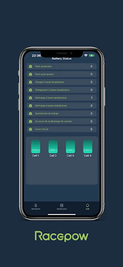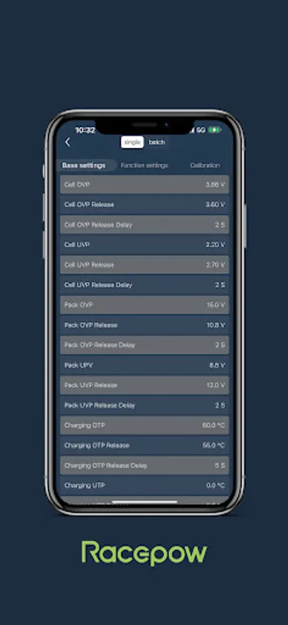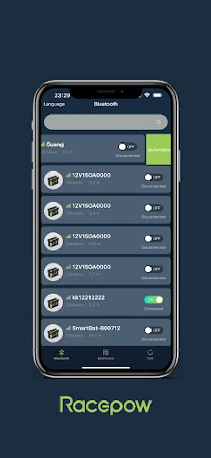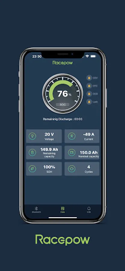 Racepow intelligent battery management system monitors battery status through Bluetooth connection, displays information during battery operation in real time, exchanges information with external devices, and solves the key issues of safety, ease of use and service life of lithium battery systems. To a certain extent, the service life of the battery can be extended, and the stability of the battery group can be enhanced to a certain extent.
