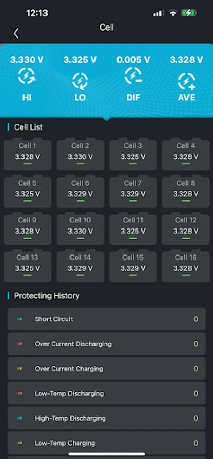 3. Each data comparison of the battery cell, the voltage difference. Maximum voltage cell Minimum voltage cell. And the display of cell balance