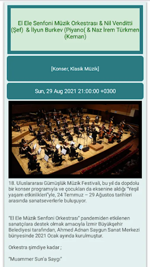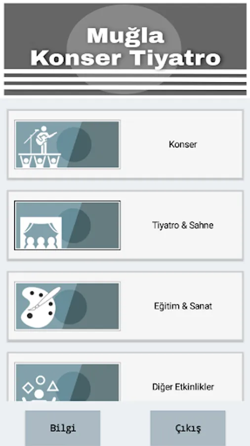 Concert theater art events application for Muğla. You can find where and who has a concert with the application.