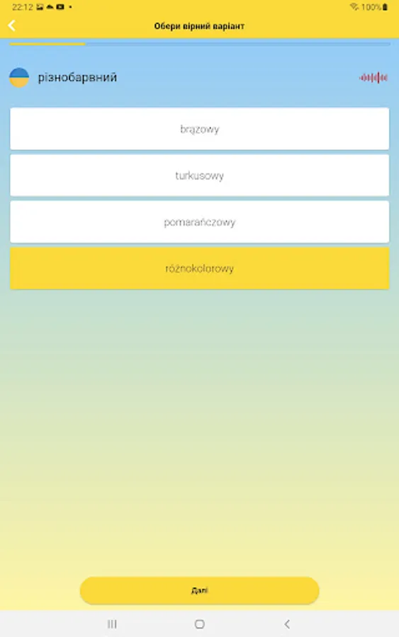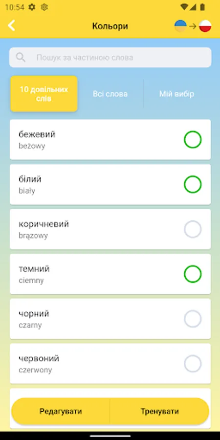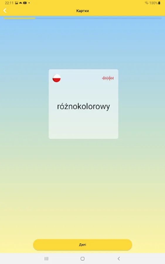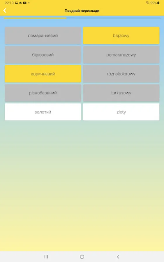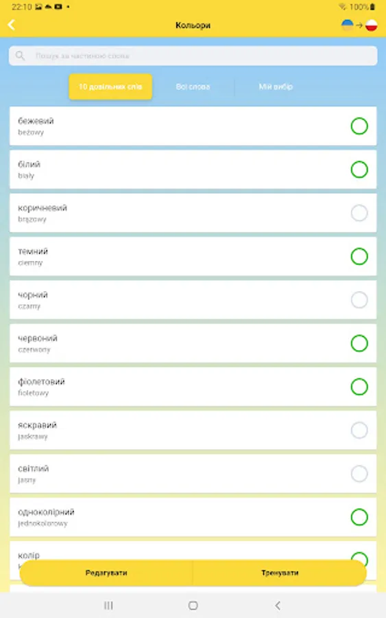 With Learn Polish, learning words becomes not only effective, but also exciting. Seven different exercises will help you consolidate your vocabulary and improve your skills of understanding and pronouncing words.