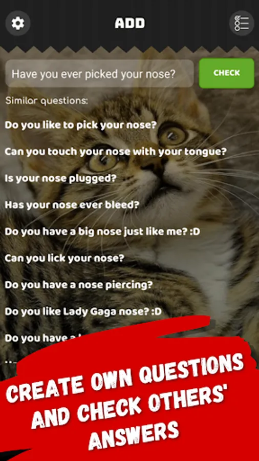 - If you will answer on all questions, you can always add your own Yes or No question to see what other people will answer!