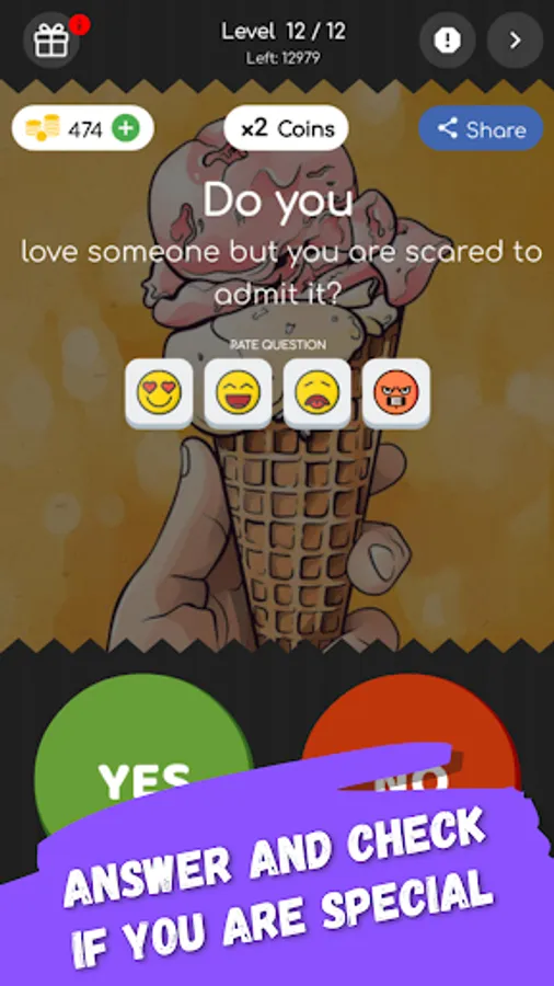 Stats shows you how many people also answered on this question and how. Game is very funny and many of our users think that this game is in top 10 in their very fun games list! It's not end. The most awesome thing is that you can add your own Yes or No questions into the game! Then you can see how other people (including kids) answer on your questions, so you will be able to share it with your friends :)