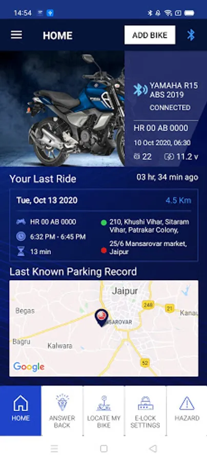 • Parking Record – shows you a route map from your current location to where you have parked your bike.