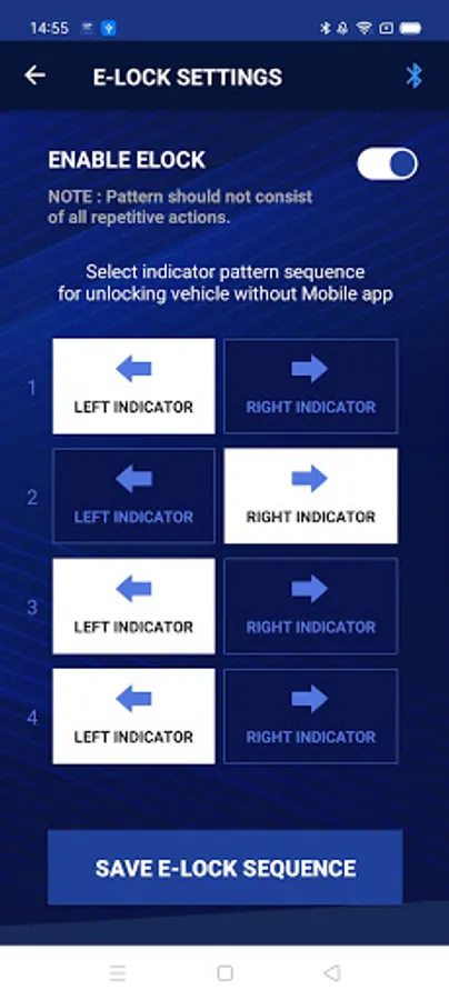 • Locate My Bike - Press this feature to locate your bike in parking area. When activated, the all 4 indicators will illuminate for 10 seconds, letting you know the exact location.