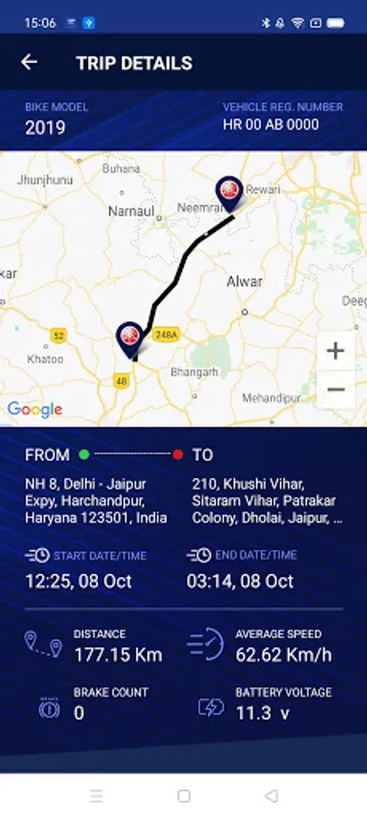 • Hazard - Upon clicking the button, all the indicators start blinking continuously, to notify fellow riders on the road to be cautious.