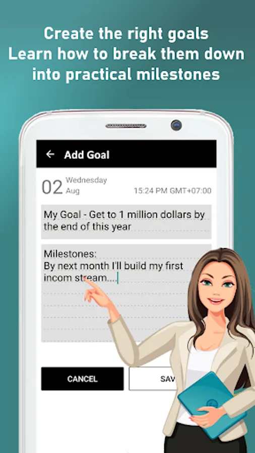 Use the app to create goals and daily habits, use the notification alert system to check progress, success streaks, and weekly/daily goal tracking.