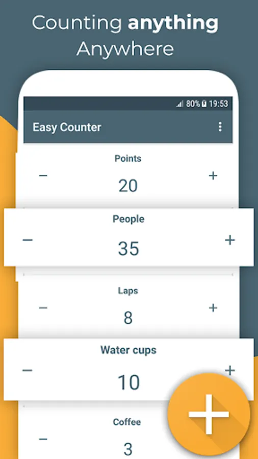 Easy Counter is a simple clicker application. You can try it for any purpose. Add and name what you want to count with our tool. Tap the button to add numbers to what you count. Save the counted number in the application history.