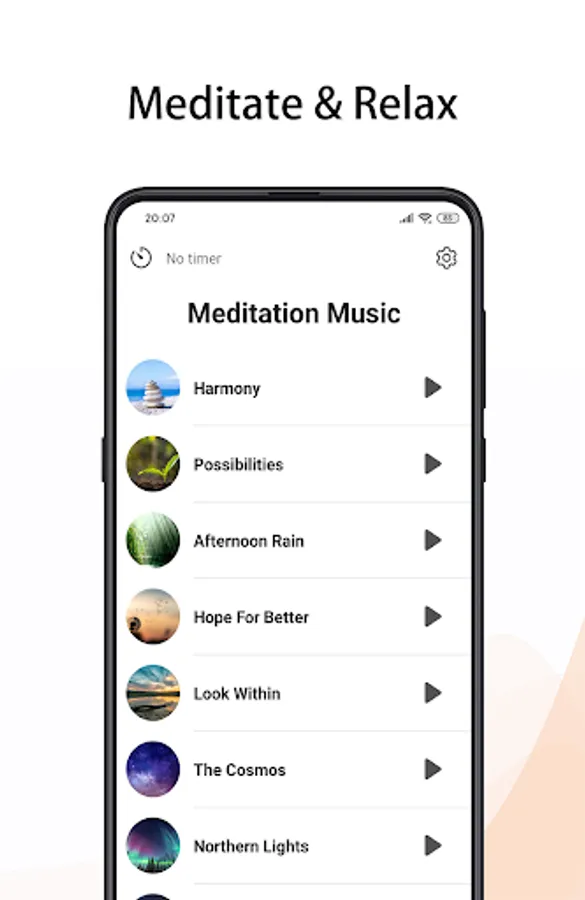 Meditation Music Pro contains 36 different high quality meditation melodies, no ads and no network required.