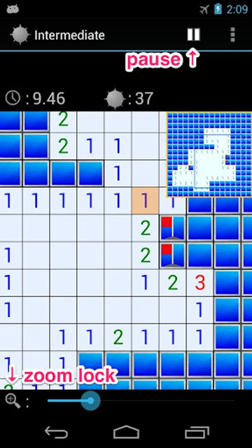 You can open a block with tapping and put up a flag with tapping and holding. In addition, you can use a question mark by tapping a flag. After flags and question marks are tapped and held, they return to blocks.