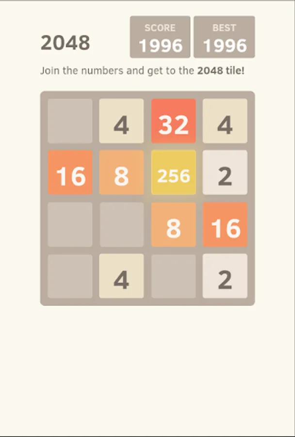The scorecard in the top right corner indicates the player's score. The initial point is 0. When two cubes are combined, the player will increase the value of the new square. Next to the current score is the highest scoring player ever achieved.