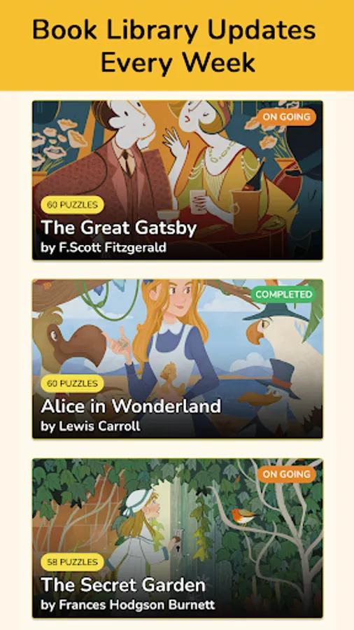 - Expansive library: Collect Ink Drops coins to unlock over 1000 jigsaw puzzles and 25 books in progress, building your own novel library.