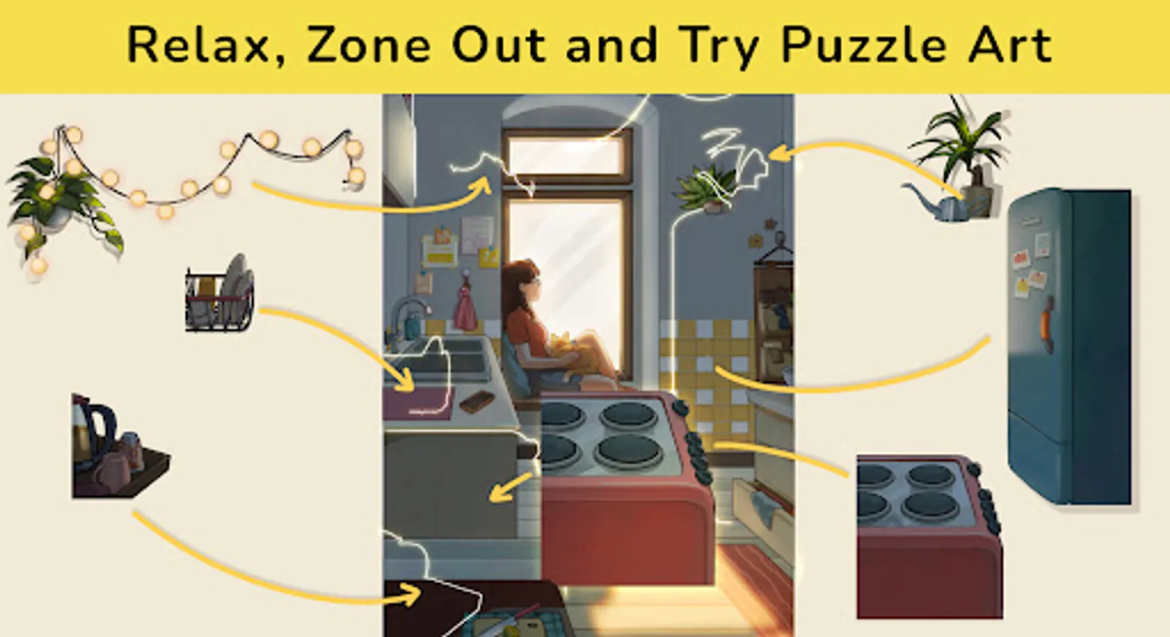 - Jigsaw puzzles and coloring: Enjoy a blend of jigsaw puzzle solving and art coloring, where players fit pieces together and watch completed puzzles come to life through soothing animations.