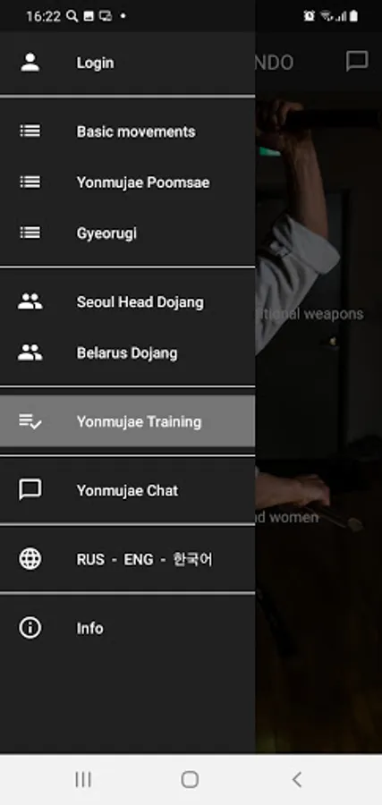 The "Yonmujae Taekwondo" mobile application contains information about the traditional Korean martial art of taekwondo.