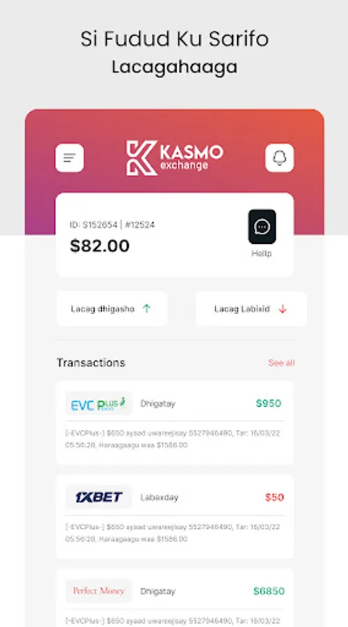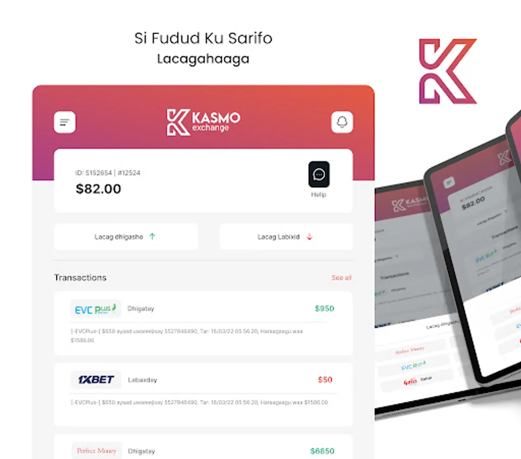 Kasmo Exchange waa suuq sarifka lacaga qalaad iyo EVCPlus to Prefect Mone , 1Xbet