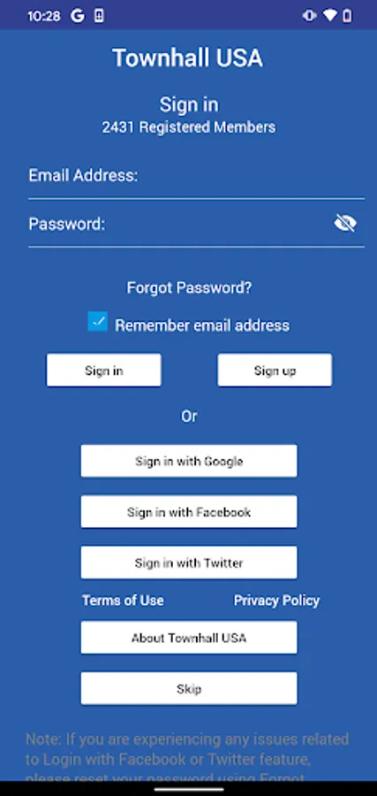 Townhall USA, owned by Yoopine, is not affiliated with any other company, political party, or interest group. We do not share data with any other company and we do not take data from any other company. You have an option to Signup With Facebook and Twitter if it is convenient to you, but it is not required.