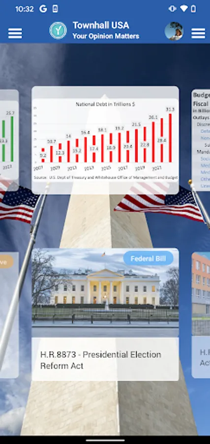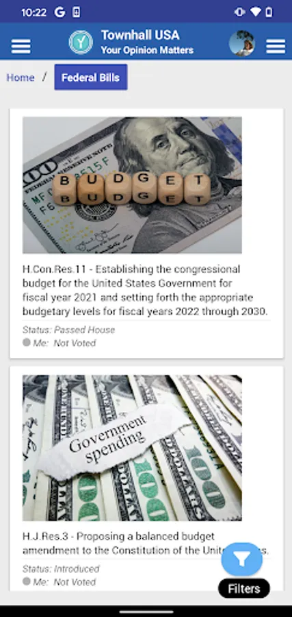 Townhall USA enables you to see the actual legislative bills, learn more about the issues you care, and have a conversation about it with each other and with your elected representatives.