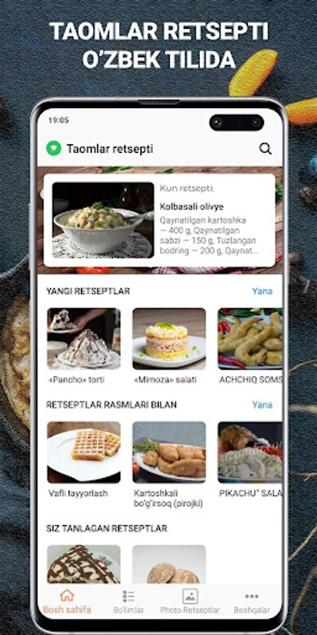 Bu ilovada 300+ 🍲taomlar resepti bor