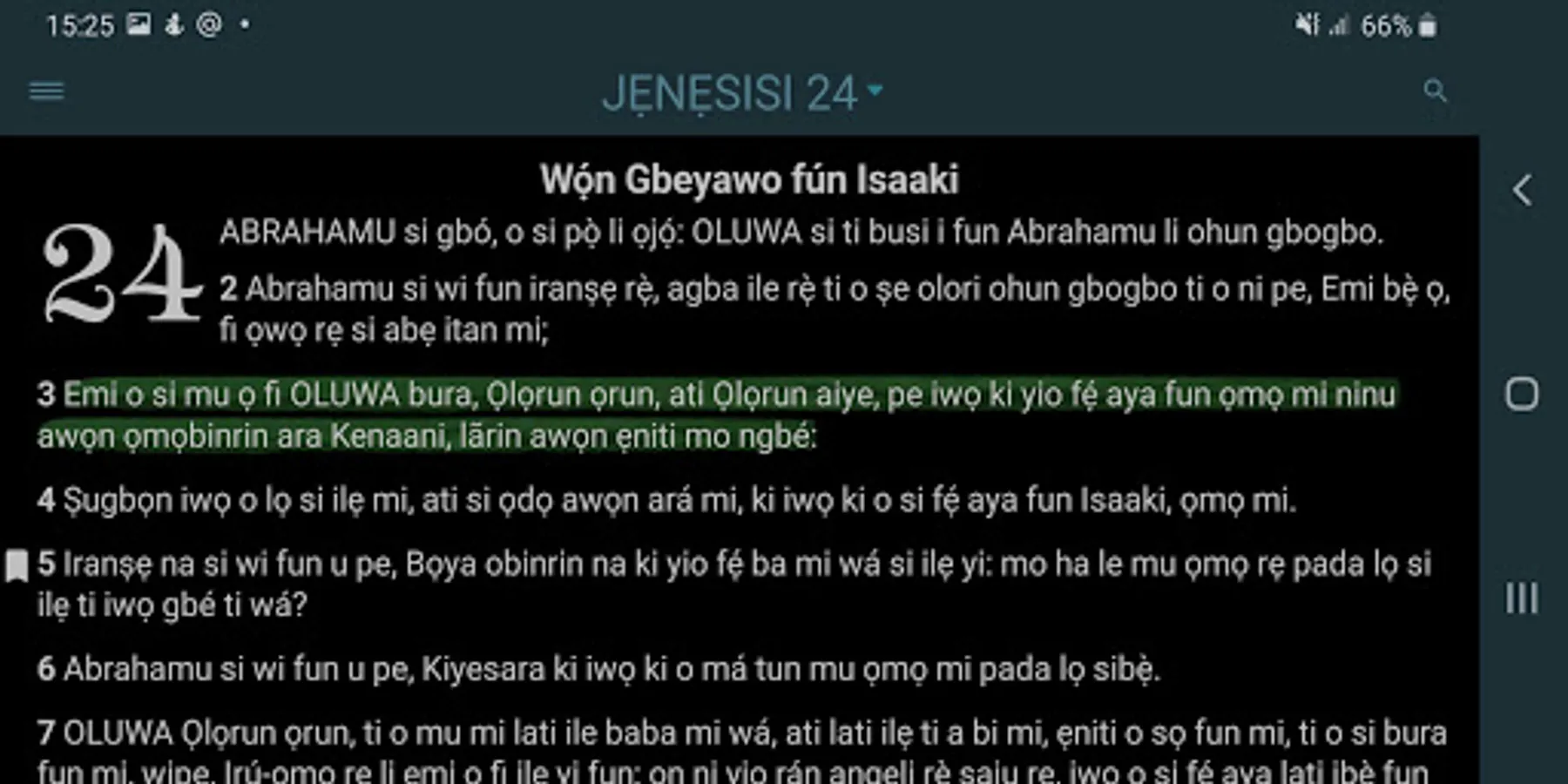 This Yoruba and English Bible app brings you the King James version of the holy Bible in the Yoruba language. Spoken by over 16 million people and being an official language of Nigeria, this app comes rich with features which provide any reader of the holy bible the chance to read it in the Yoruba Bible version.