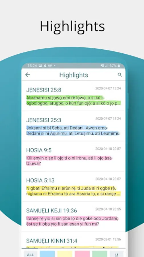 Your reading progress of the Yoruba Bible is being continuously updated. This way, you can track your progress over days, weeks and months. Also see how much of the entire app's books you have read at any given time.