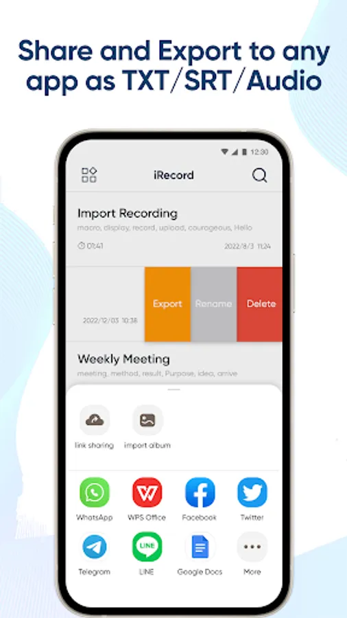 * Import & Export: import from any apps, transcribe and export transcripts into different formats.