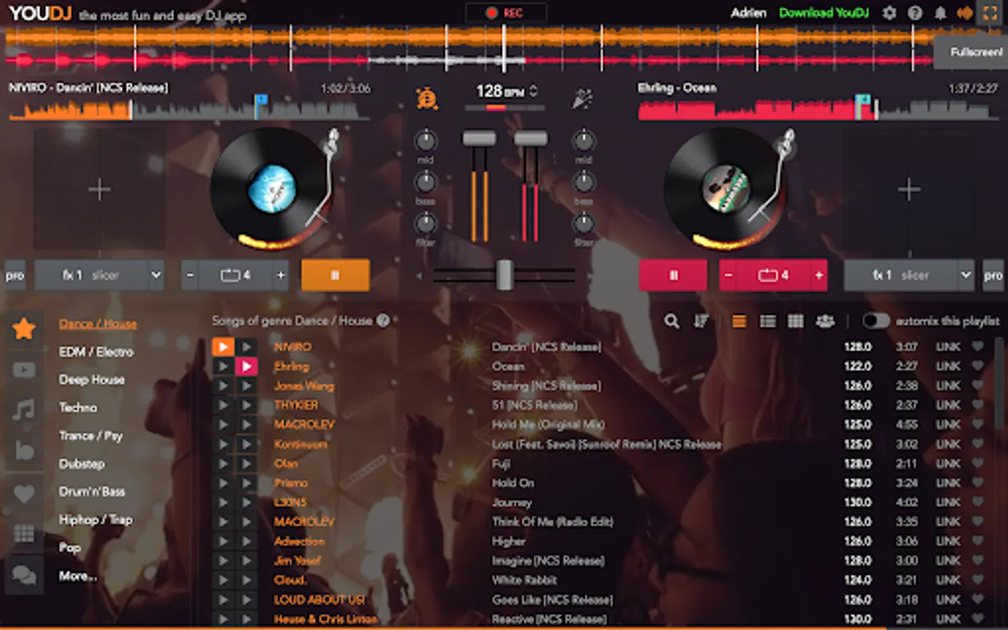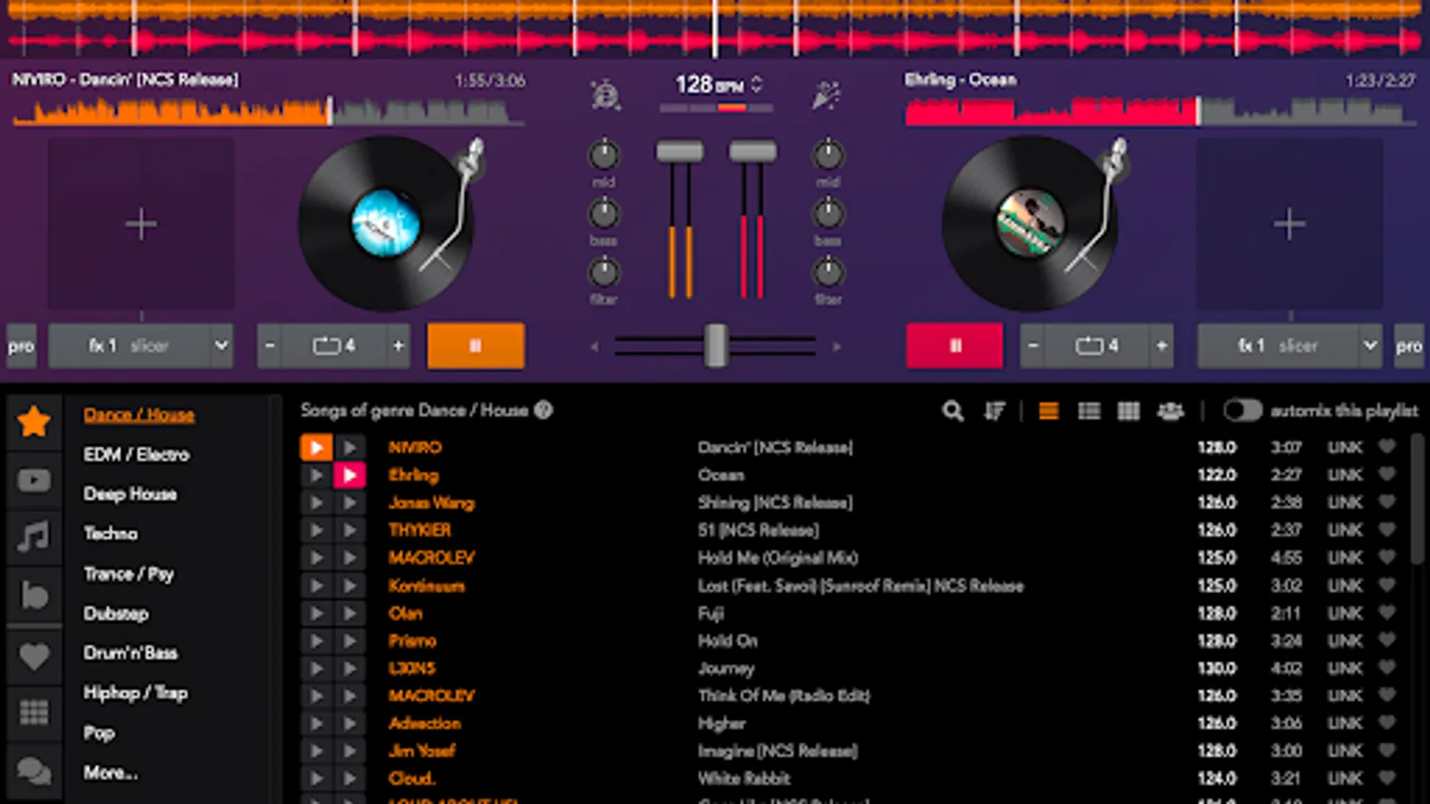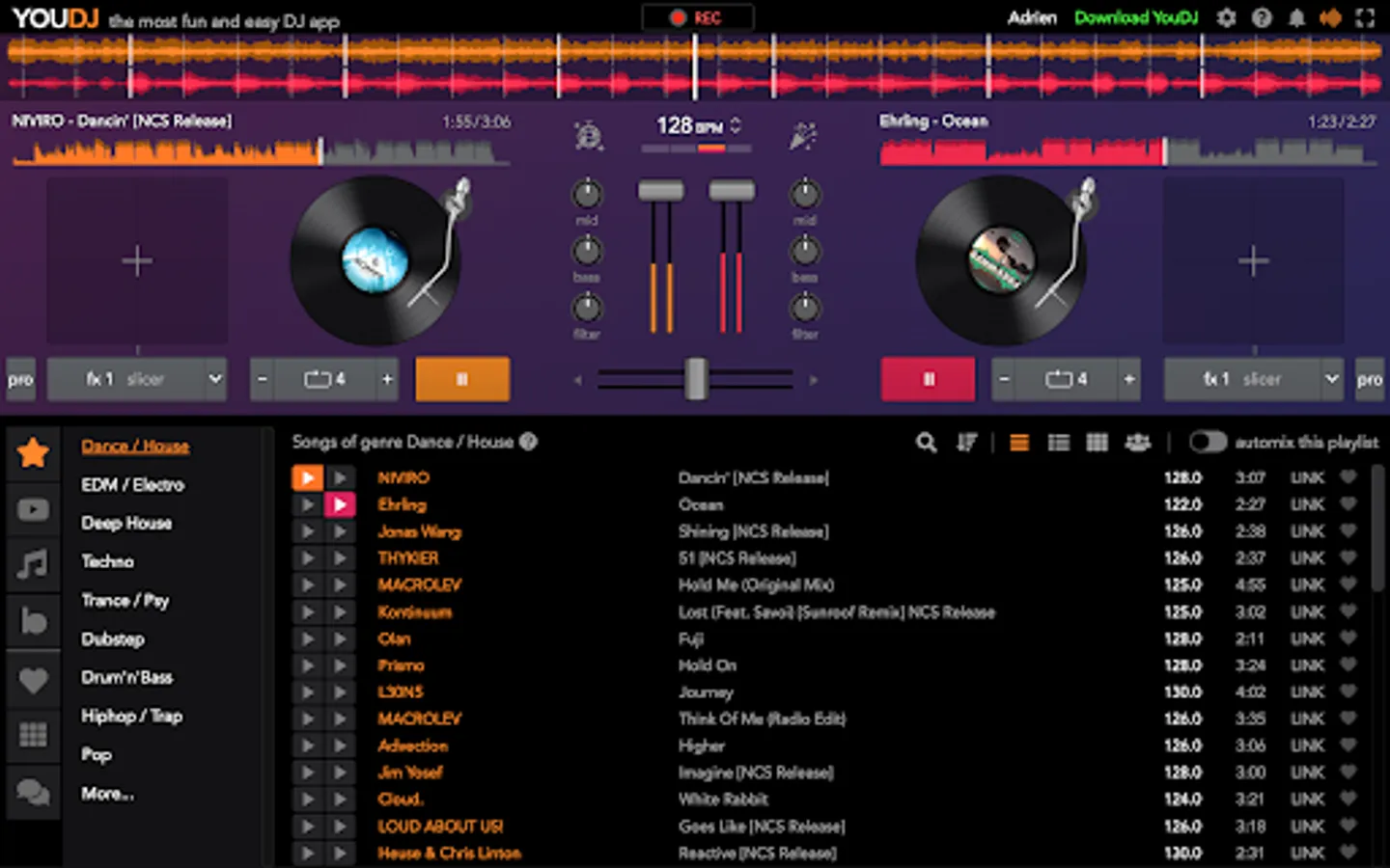 YouDJ is the most easy DJ software. Mix music like a pro DJ even if it is your first time! You don't need music either, YouDJ comes with great songs too. Also it is mostly free and with no ad!