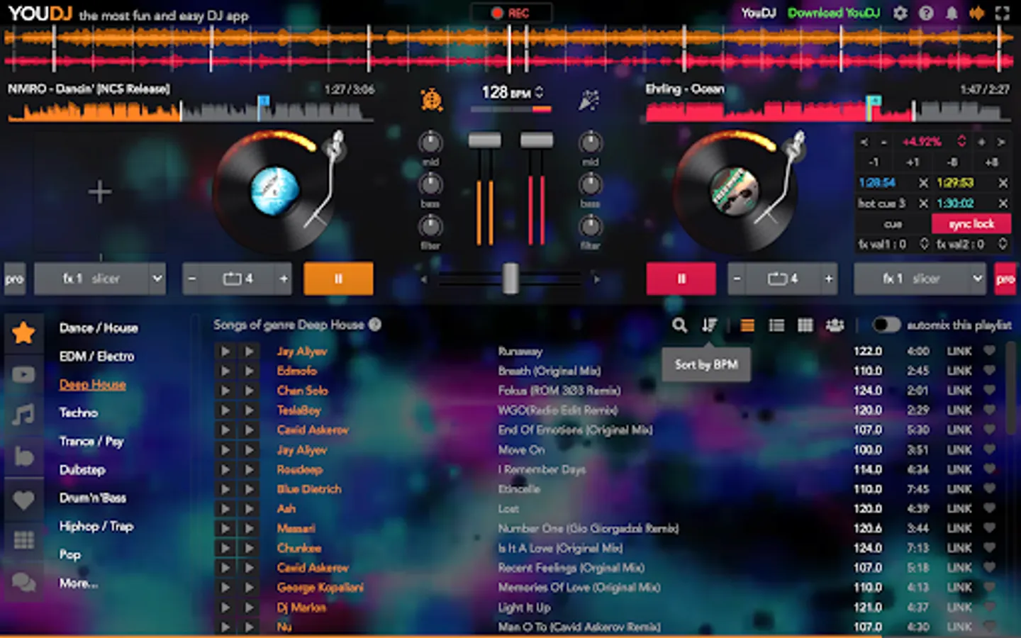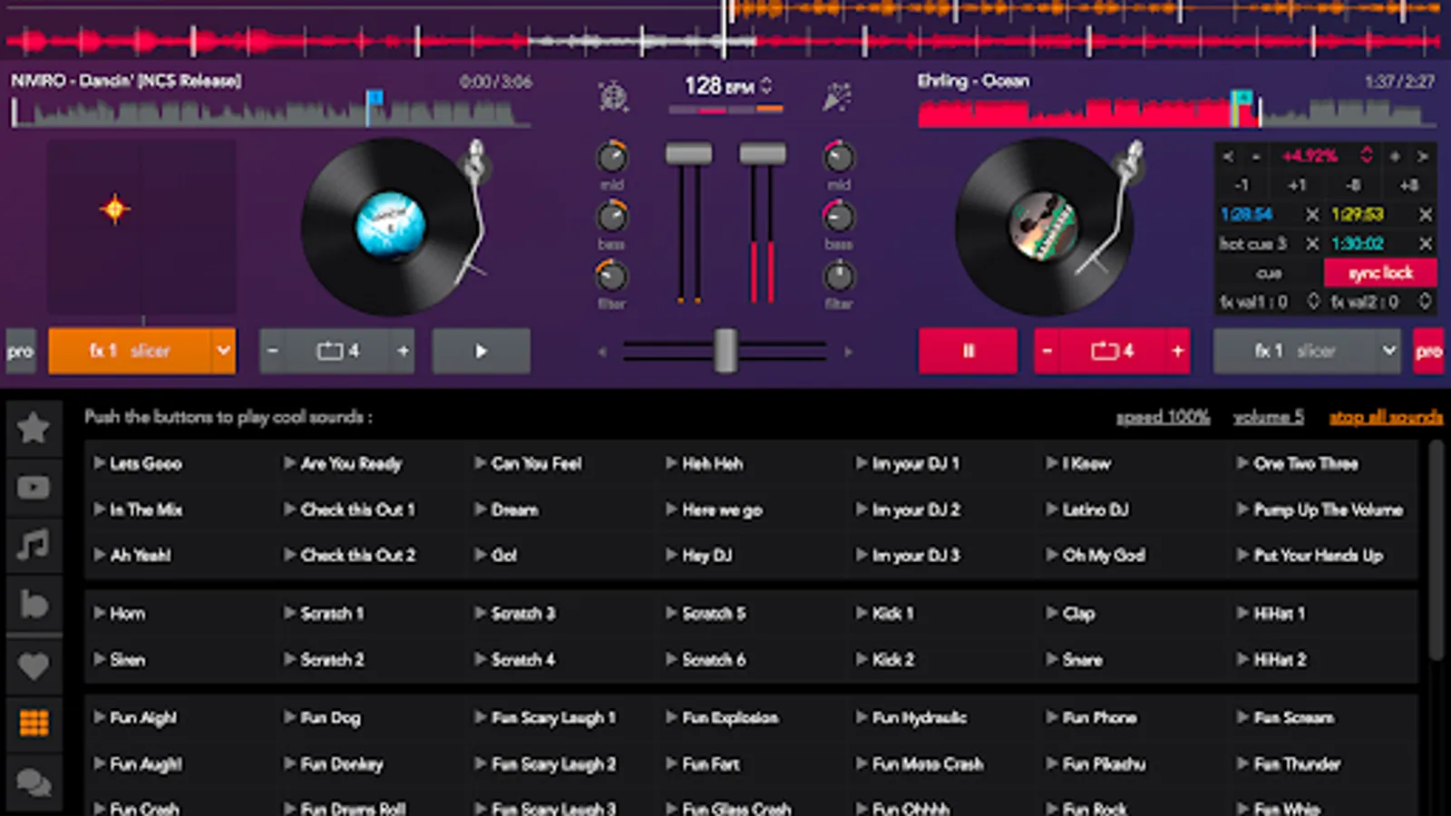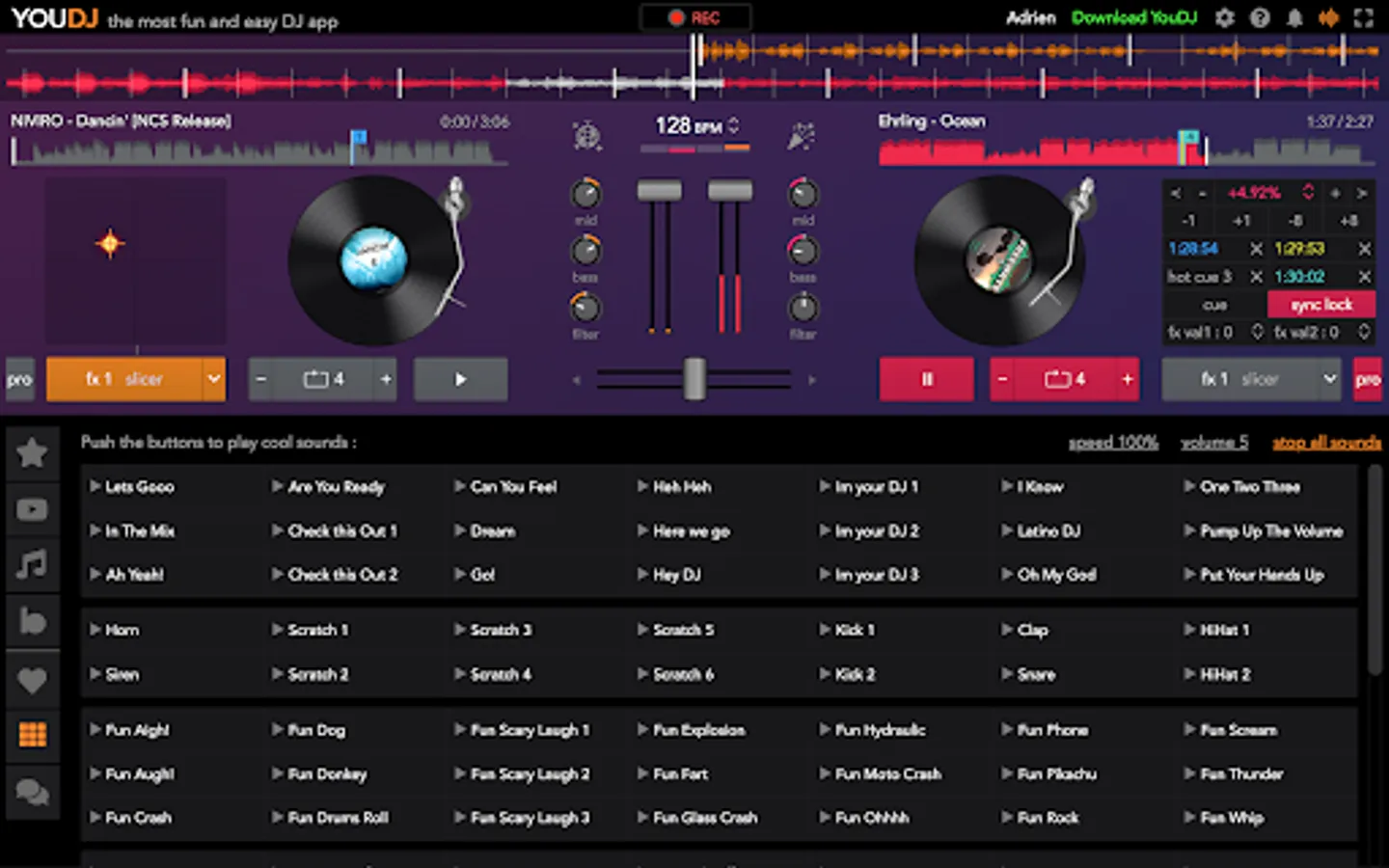 YouDJ is the most easy DJ software. Mix music like a pro DJ even if it is your first time! You don't need music either, YouDJ comes with great songs too. Also it is mostly free and with no ad!